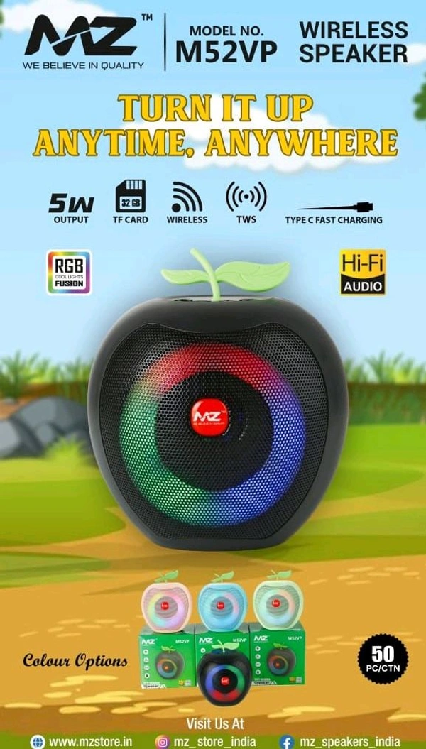 MZ 52VP Wireless Speaker 🔊 With RGB Light (TF Card, TWS, 5Watt, Type-C charging)
