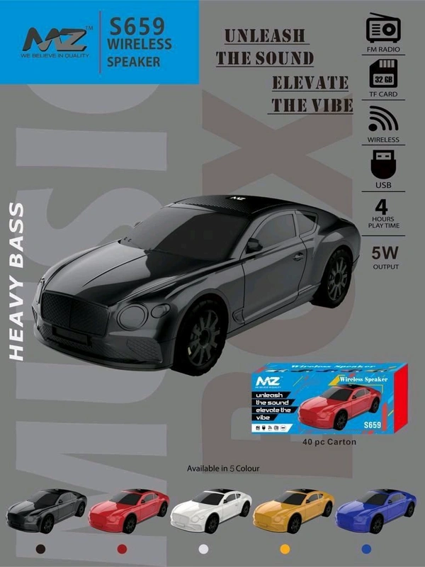 MZ S659 Wireless Car Speaker 🔊 (FM Radio, TF Card, 4Hrs Playtime, 5Watt)