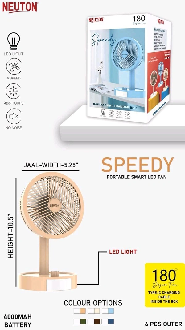 NEUTON SPEEDY Portable Smart Led Fan 180⁰ Rotation Type-C Charging 4000mAh Battery 🔋
