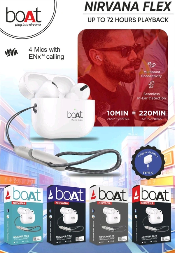 New Boat Nirvana Flex (Pro2) Dori With Type-C Pin Superb Quality Earbuds