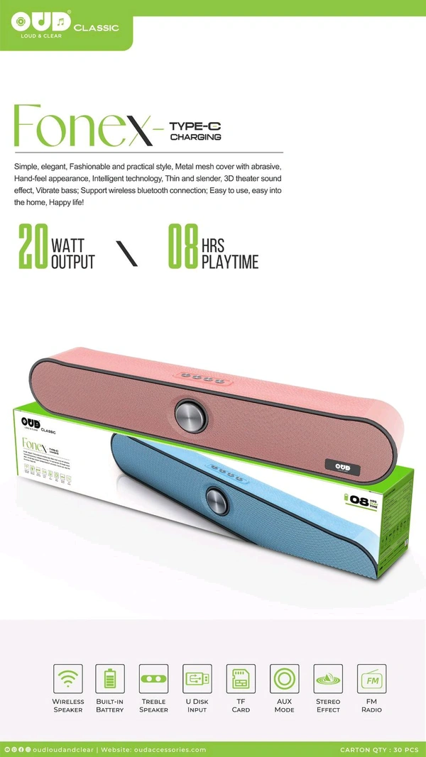 New OUD Fonex Type-C Port Soundbar Speaker 🔊 20watt Output