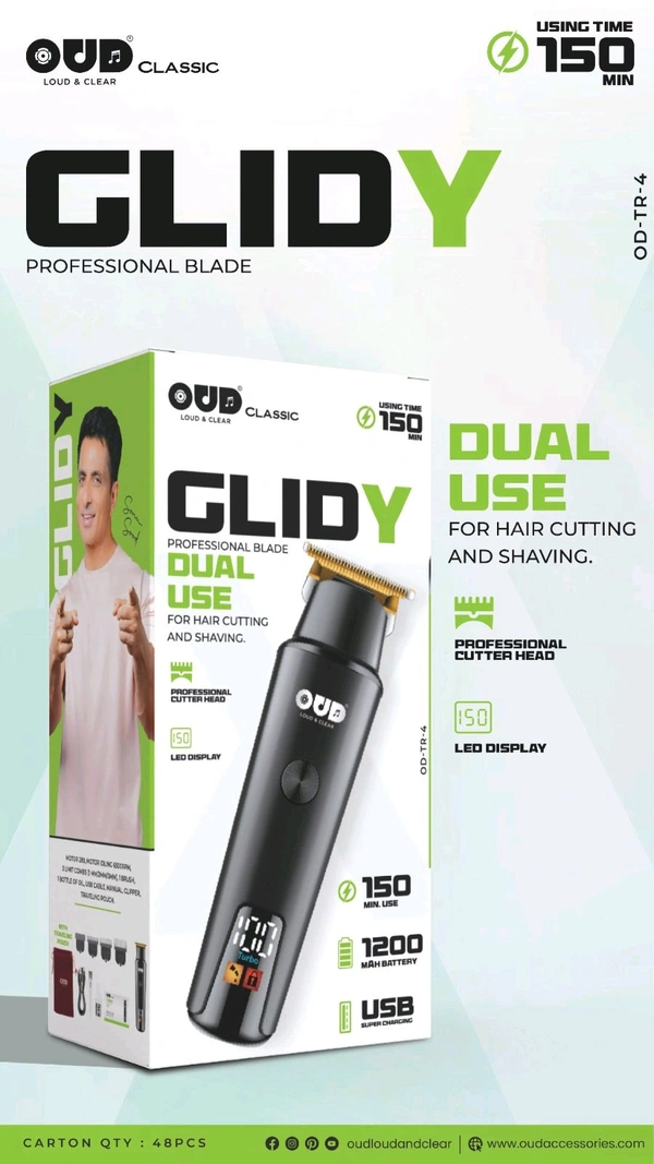 New OUD Glidy OD-TR-4 Dual Use (Hair Cutting & Saving) Led Display 1200mAh Battery
