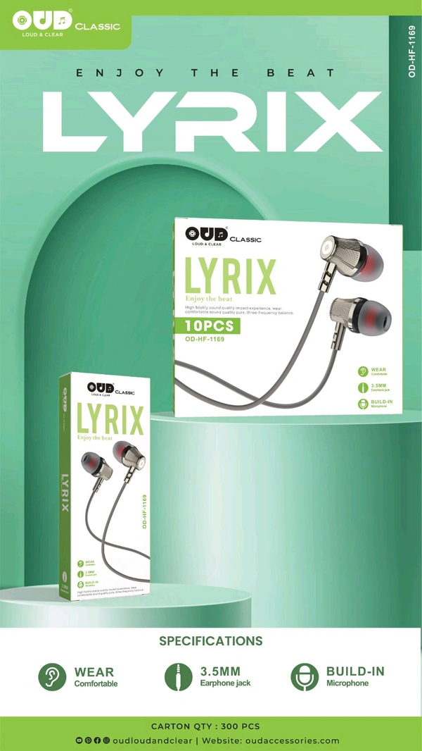 New OUD Lyrix OD-HF-1169 3.5mm Mic Earphone