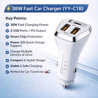 Original YY-C18 38W Double Usb + Pd Car Charger Adapter Best Quality