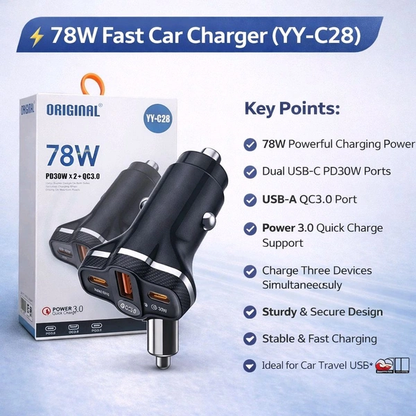 Original YY-C28 78W PD 30Wx2 + QC3.0 Car Charger Adpter