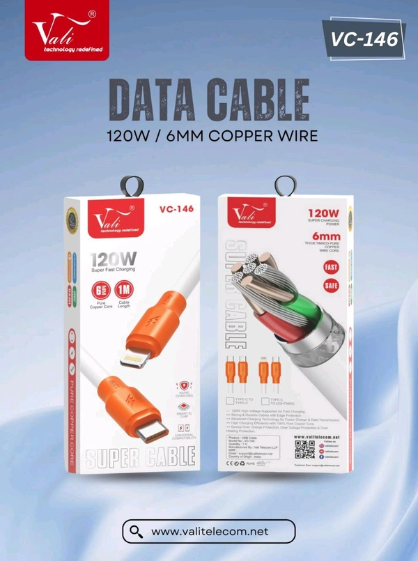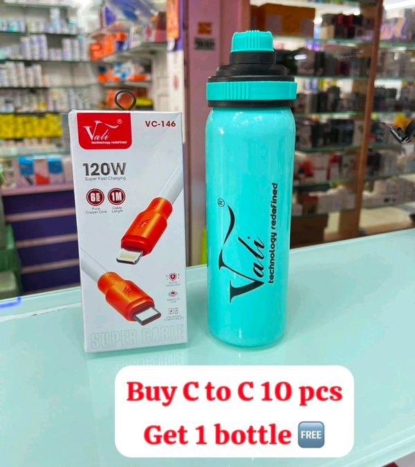 Vali V-146 120W/6MM Copper Wire Cable Type-c To Type-C Cable (Buy 10 PCs Get Bottle Free)