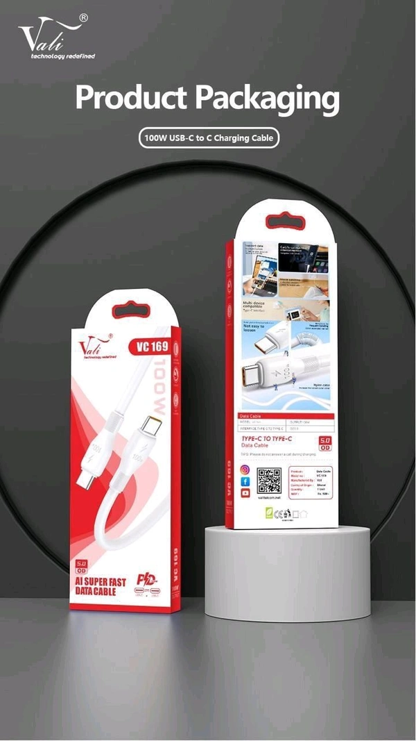 Vali VC-169 100W PD CABLE (C TO C) FAST CHARGING+ DATA CABLE