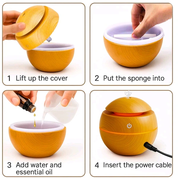Wooden Cool Mist Humidifier cup Essential Oil Diffuser with Colorful Changing Lights for Indoor Garden, Car, Office, & Room (Light Brown, Pack of 1)
