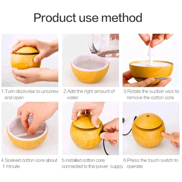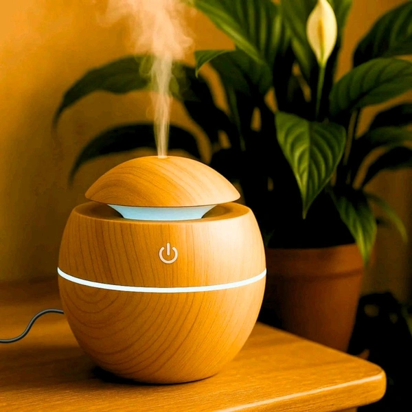 Wooden Cool Mist Humidifier cup Essential Oil Diffuser with Colorful Changing Lights for Indoor Garden, Car, Office, & Room (Light Brown, Pack of 1)